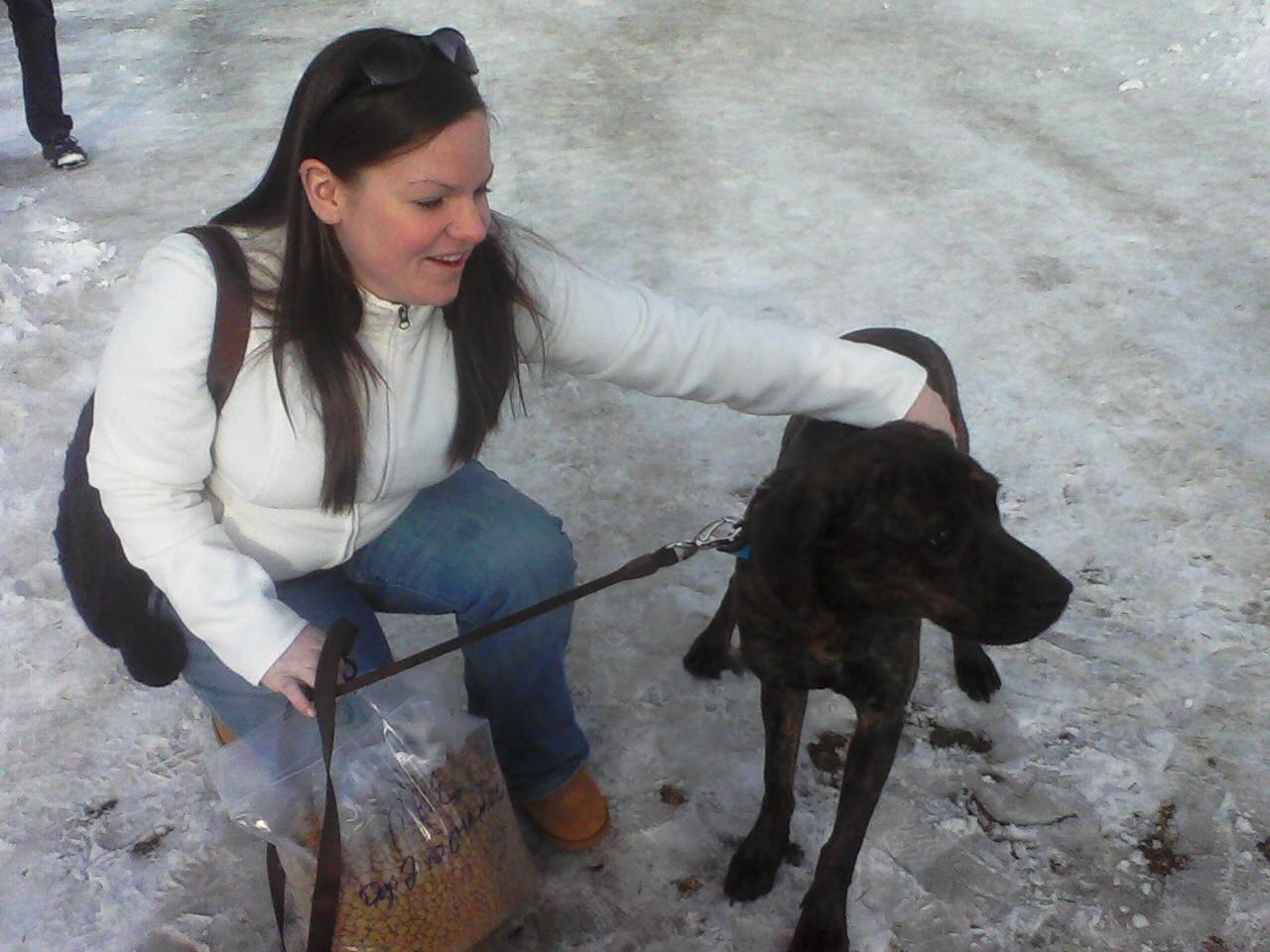 "We're doing great! I absolutely love her and she's quickly getting comfortable with me. She's nervous on walks when we walk past other people on sidewalks but she is already getting better with that and also she loves the snow (which is great because we have plenty!) I set up a private training class for her Thursday night. I think a group class might be too distracting for her at first. I'm loving getting to know her. She's amazing :) "
